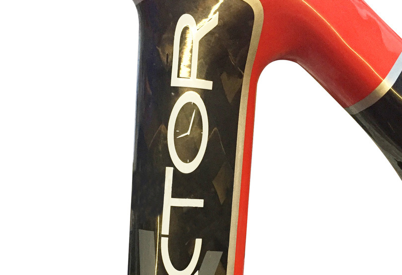 We cut out the damaged area and replaced with new carbon, we then produced a Kuota logo and matched the existing paintwork.